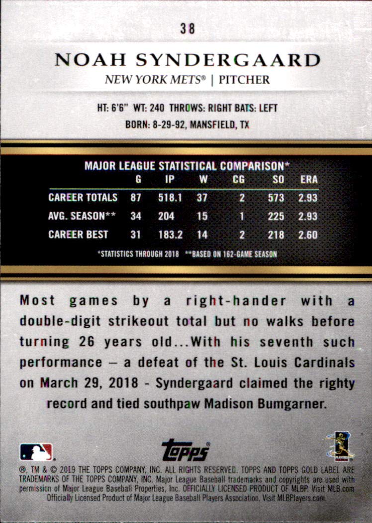 2019 Topps Gold Label Class 3#38 Noah Syndergaard Baseball ...