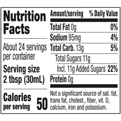 Log cabin maple syrup nutrition facts. Calories in Log Cabin Sugar Free Syrup and Nutrition Facts - FatSecret Nutrition Facts Serving Size 1/4 cup (60 ml) Amount Per Serving Calories 20 % Daily Values* Total Fat 0.00g 0% Saturated Fat 0.000g 0% Trans Fat 0.000g Polyunsaturated Fat 0.000g Monounsaturated Fat 0.000g Cholesterol 0mg 0% Sodium 150mg 7% Total Carbohydrate 8.00g 3% Dietary Fiber 0.0g 0% Sugars 0.00g Includes 0.00g Added Sugars 0% Protein 0.00g Calories in Log Cabin Original Syrup and Nutrition Facts Log Cabin Original Syrup Food database and calorie counter Log Cabin Original Syrup Nutrition Facts Serving Size 2 tbsp (30 ml) Amount Per Serving Calories 110 % Daily Values* Total Fat 0.00g 0% Saturated Fat 0.000g 0% Trans Fat 0.000g Polyunsaturated Fat 0.000g Monounsaturated Fat 0.000g Cholesterol 0mg 0% Sodium 55mg 2% Total Carbohydrate 28.00g Calories in Log Cabin Sugar Free Maple Syrup and Nutrition Facts Food database and calorie counter Log Cabin Sugar Free Maple Syrup Nutrition Facts Serving Size 1/4 cup (60 g) Amount Per Serving Calories 20 % Daily Values* Total Fat 0.00g 0% Saturated Fat - Trans Fat - Cholesterol - Sodium 150mg 7% Total Carbohydrate 8.00g 3% Dietary Fiber - Sugars 7.00g Includes 0.00g Added Sugars 0% Protein 0.00g Vitamin D - Log Cabin Syrup Original Allergy and Ingredient Information Log Cabin Syrup Original Log Cabin Syrup Original, UPC Code 043000000373 Manufactured by Pinnacle Foods. Allergen Inside Helping You Shop & Eat Safer. Home; ... Nutrition Facts. Serving Size 0.25 cup. Servings Per Container 12.00. Amount Per Serving. Calories 200 Calories from Fat 0 % Daily Value* Total Fat 0g. 0%. Sodium 0.11g.