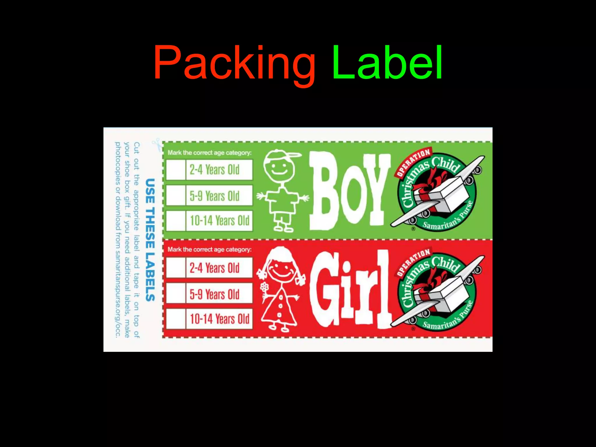 Operation christmas child labels for boxes