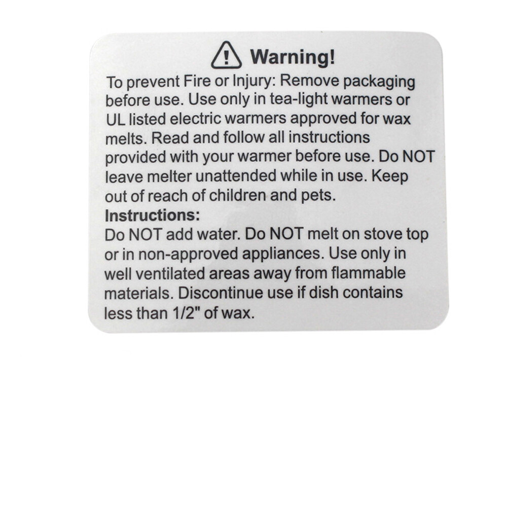Candle Warning Labels 2 Inch - CandleScience The 2 inch labels are perfect for labeling large container and pillar candles. Label Reads: WARNING. Burn within sight. Keep away from flammable objects. Keep away from children and pets. Burning Instructions: Trim wick to 1/4" before lighting. Keep candle free of any foreign materials including matches and wick trimmings, Only burn the candle ...
